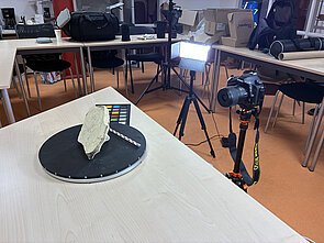 Photos d'une campagne de numérisation 3D pour l'INRAP